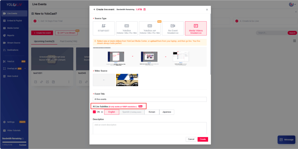 AI Live Subtitles are now available on YoloCast Business — including YoloCast events created directly on YoloBox.