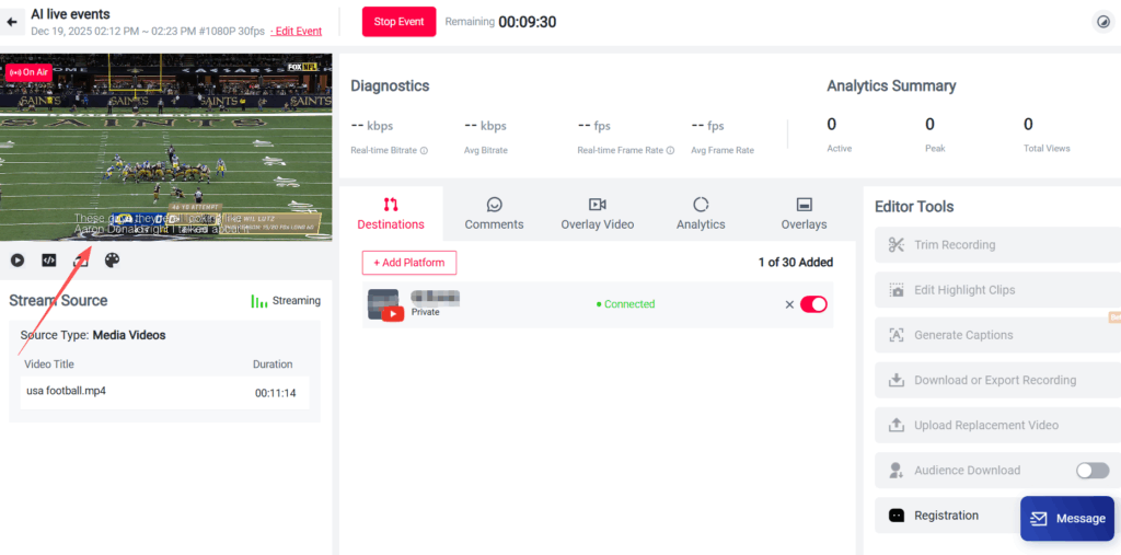 Once the event is created and AI Live Subtitles are enabled, start your live stream as usual.