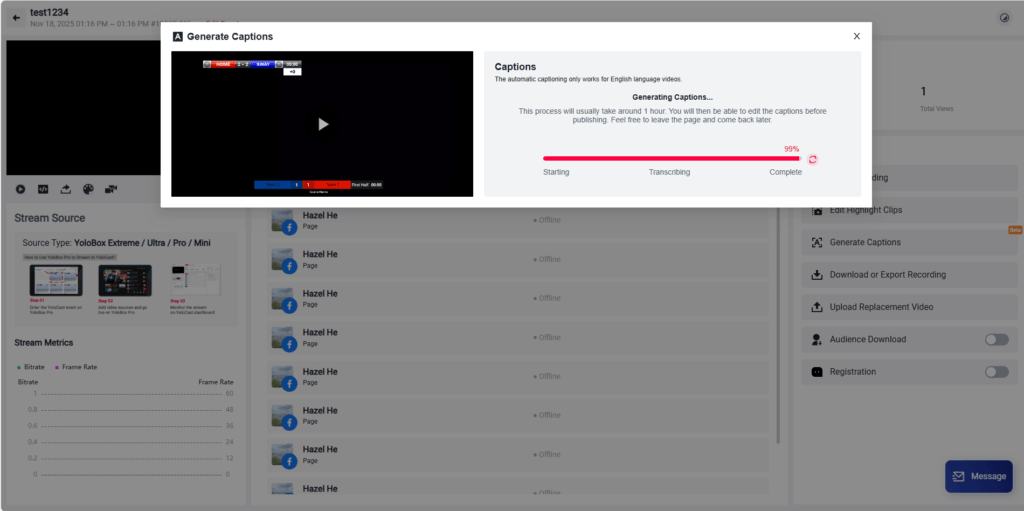 With this feature, spoken audio in your live stream is converted into on-screen subtitles in real time, fully integrated into the YoloCast workflow. No third-party tools are required.