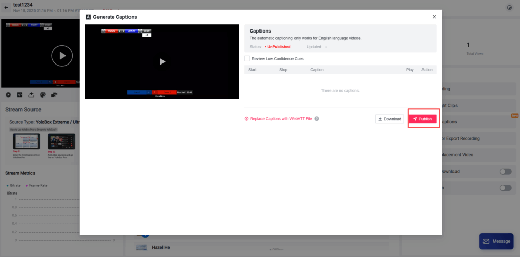AI Live Subtitles are available exclusively for YoloCast Business plan users.