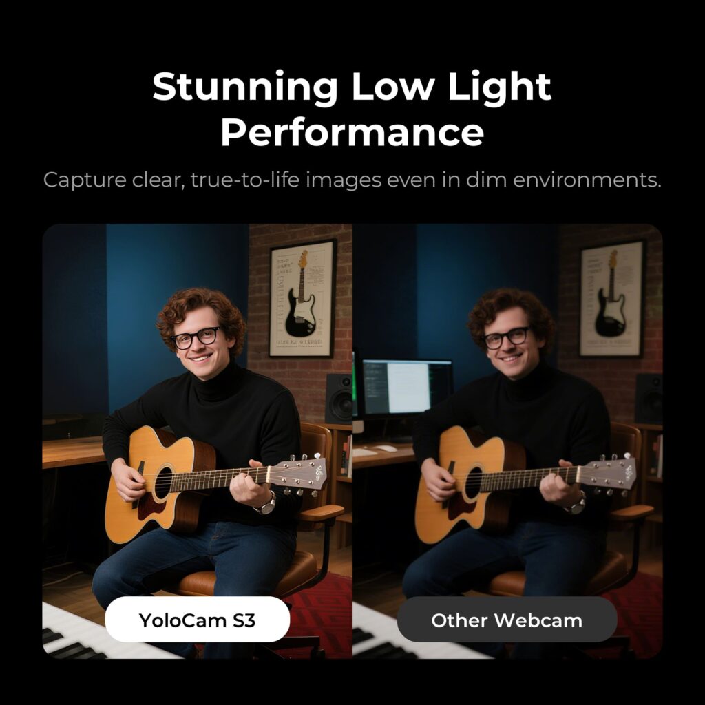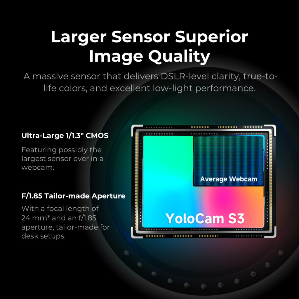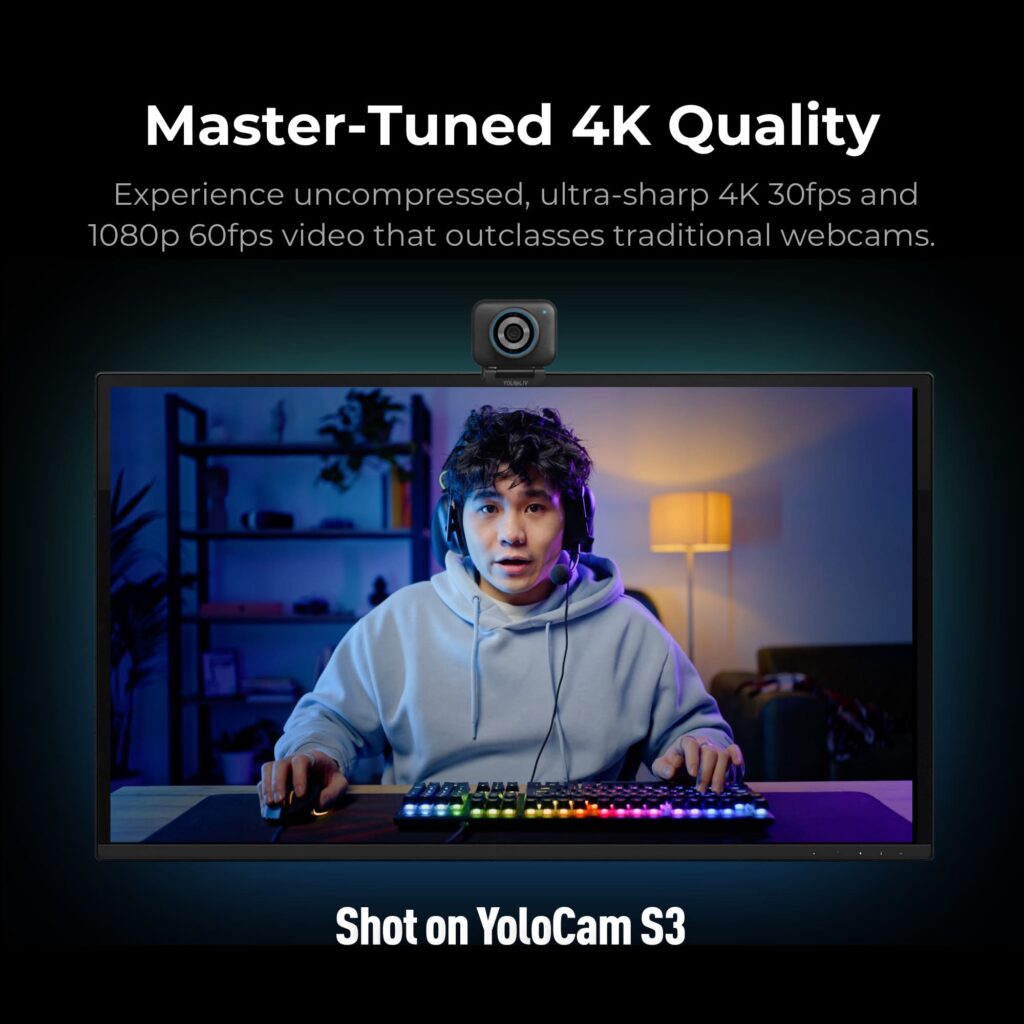 With its 1/1.3″ CMOS sensor, instantaneous PDAF autofocus, and zero-compression 4K 30fps video through USB-C 3.0, YoloCam S3 captures crisp, vibrant, and lifelike detail and clarity that outclasses all other 4K webcams.